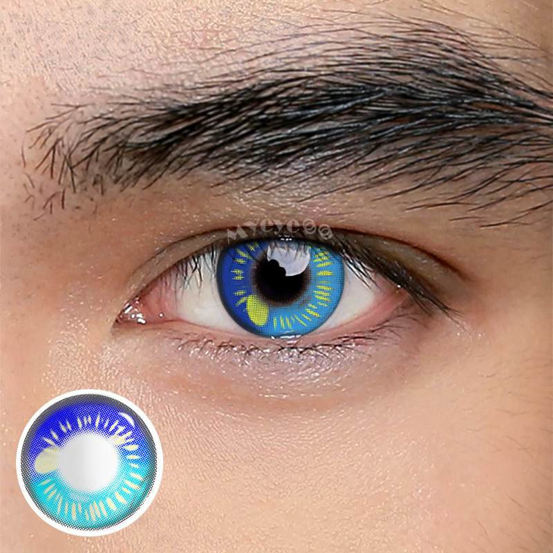 MYEYEBB Sunflower Blue Prescription Men Cosplay Colored Contact Lenses