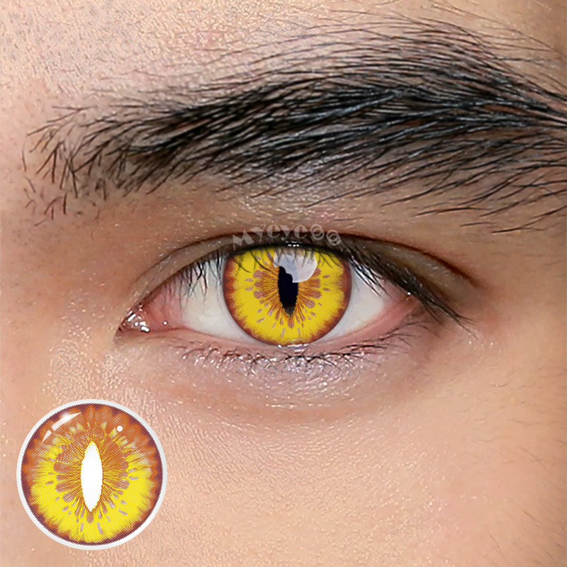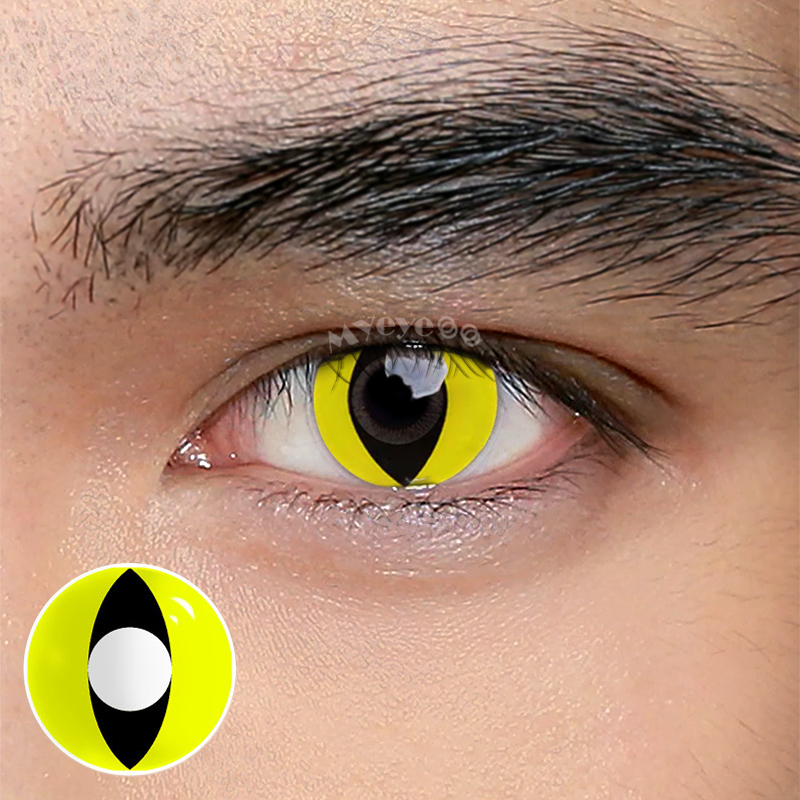 MYEYEBB Yellow Cat Eyes Prescription Men Cosplay Colored Contact Lenses